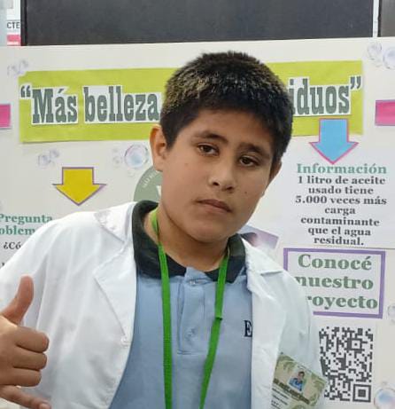 Un sexto año de la escuela N° 73 «Nación Argentina», de Cuartel V en Moreno, preocupado por el desecho irresponsable de aceites usados, llevó adelante un trabajo vinculando el cuidado ambiental con la búsqueda de la belleza, entendida como “algo que nos hará bien a todxs en comunidad”. Sobre este proyecto, que llegó a la instancia Regional de Feria de Ciencias, nos cuentan la docente, Valeria Lado Costa, y lxs alumnxs Mía Valentina Chamorro Ortiz y Thiago Valiente Sánchez.
