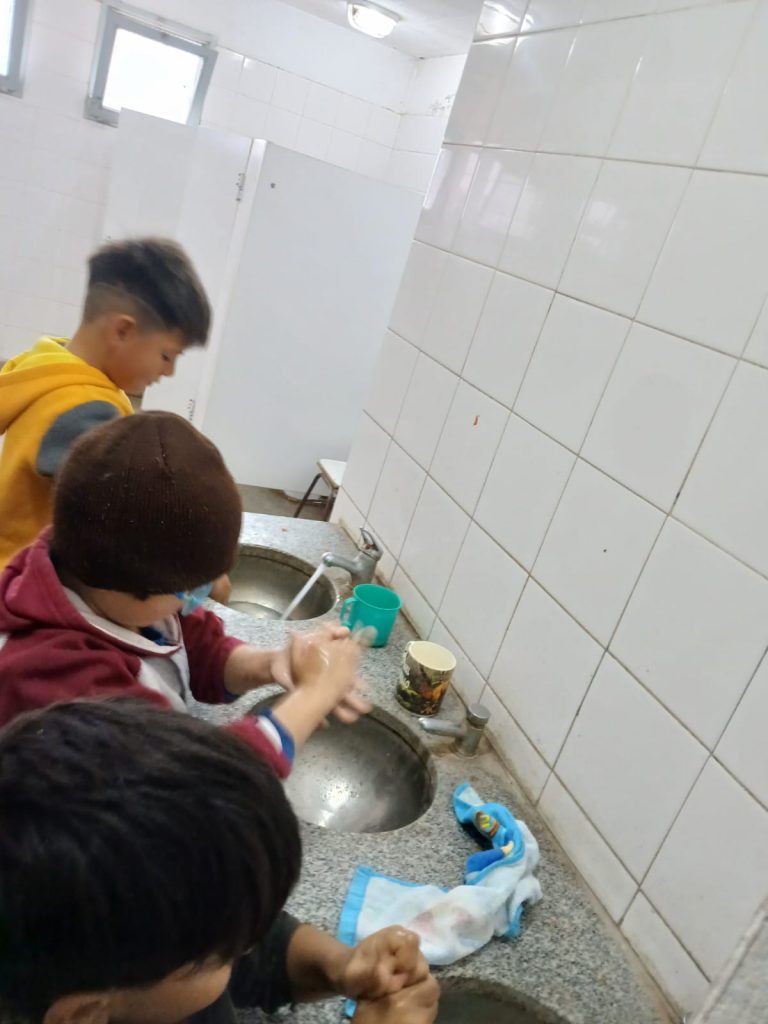 Sabíamos que teníamos que participar en Feria de Ciencias; la idea era mostrar un proyecto y hacer que se vea el trabajo de la escuela. Pensamos en ciencia, pero abordándolo desde lo social, desde lo comunitario. Y así acercar a lxs chicxs a esto de que puedan participar de la realidad que tiene la comunidad y cambiarla. Llegamos a este proyecto viendo que en tiempos de tormentas, de temporal, algunas calles se anegan por el exceso de agua; muchxs de nuestrxs nenxs no vienen y los días siguientes también hay mucha inasistencia. Y desde ahí empezamos a investigar cuál podría ser la causa. ¿Cómo fue esa investigación? Mía y Thiago, que nos representaron en la Feria Distrital y luego en la Regional, y fueron muy felicitados por su presentación, lo pueden explicar.