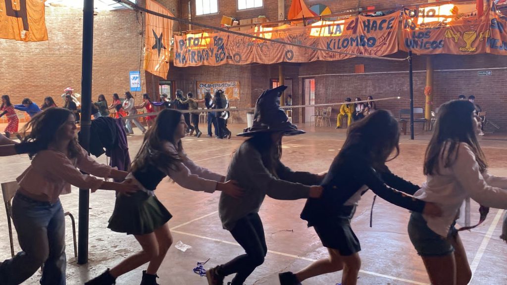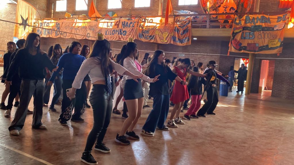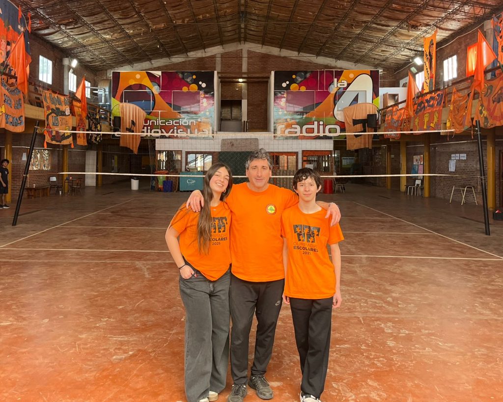 Fernando Otero: Desde hace unos cuantos años en el Partido de la Costa se viene haciendo un proyecto municipal que se llama “Olimpíadas escolares” donde participan todas las escuelas secundarias. Tiene varias fechas para deportes, natación, ajedrez, teatro y otras actividades. Lxs chicxs se preparan para participar porque hasta hace un año atrás el premio era un viaje a Bariloche. Se genera un sentido de pertenencia muy lindo, y año tras año se fue dando cada vez más como una mística, lxs pibxs se comprometen y vienen. Más allá de ganar o de perder lo que genera en ellxs es único. Esta posibilidad generó muchos proyectos internos y me vio a mí metido en un lindo lío que ahora no lo puedo dejar porque la verdad que me encanta. Vienen a la escuela un sábado, todos los sábados abrimos la escuela, ya es una costumbre. Por ejemplo, venían para entrenar vóley, pero vóley ya pasó y siguen viniendo grupos haciendo teatro, canto, danza, etc. Muchxs vienen a pasar el rato, tomar unos mates y a estar acá como en su casa. Yo quiero defender estas actividades para que nadie se las toque.  Eso sí, es un laburo constante; te vas y la cabeza te sigue trabajando. Porque cada actividad que hacemos requiere de una previa organización. Yo trato de facilitarles todas las cosas que necesitan para el enorme esfuerzo que hacen.